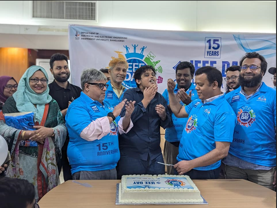 ❝Leveraging Technology For A Better Tomorrow❞ was the Motto for Today’s IEEE DAY 2024 Celebration from IEEE IUB Student Branch. Today also marks the 15th Anniversary of IEEE IUB Student Branch. All the General, Sub-committee and Executive Committee members of IEEE IUB student Branch along with Honorable Branch counselor Dr. Mustafa Chowdhury Sir and Honorable Branch mentor Prof. Dr. Abdur Razzak Sir was present at today’s fruitful celebration. Also our Former Branch counselor Dr. Md Kafiul Islam also took part in the program alongside Other respected faculty members and staff from the Department of EEE, IUB such as Prof. Dr. Shahriar Khan Sir, Prof. Khosru Mohamamd Selim Sir, Istiak Ahmed Tuham Sir Bijoya lala Ma’am, Afroza Sultana Ma’am, Kh Shahriya Zaman Sir and Emranul Haque Sir, Salsabil Shama ma’am.